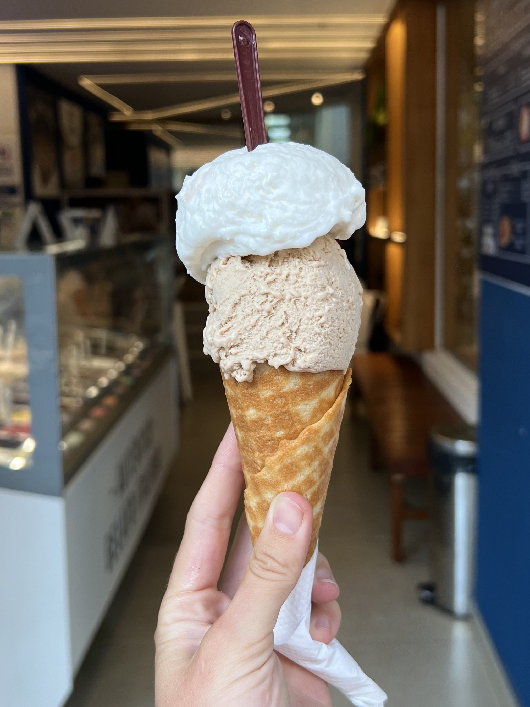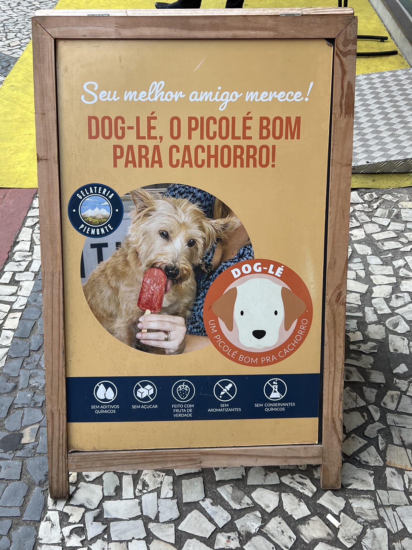Uma boa sorveteria com várias lojas no Rio. A pequena alegria, é a opção de casquinha artesanal. Mas o destaque que ficou na memória foi o sorvete para cachorros. Os cariocas adoram cães. E, afinal, só porque se tem quatro patas não significa que não se pode ter direito a duas bolas.