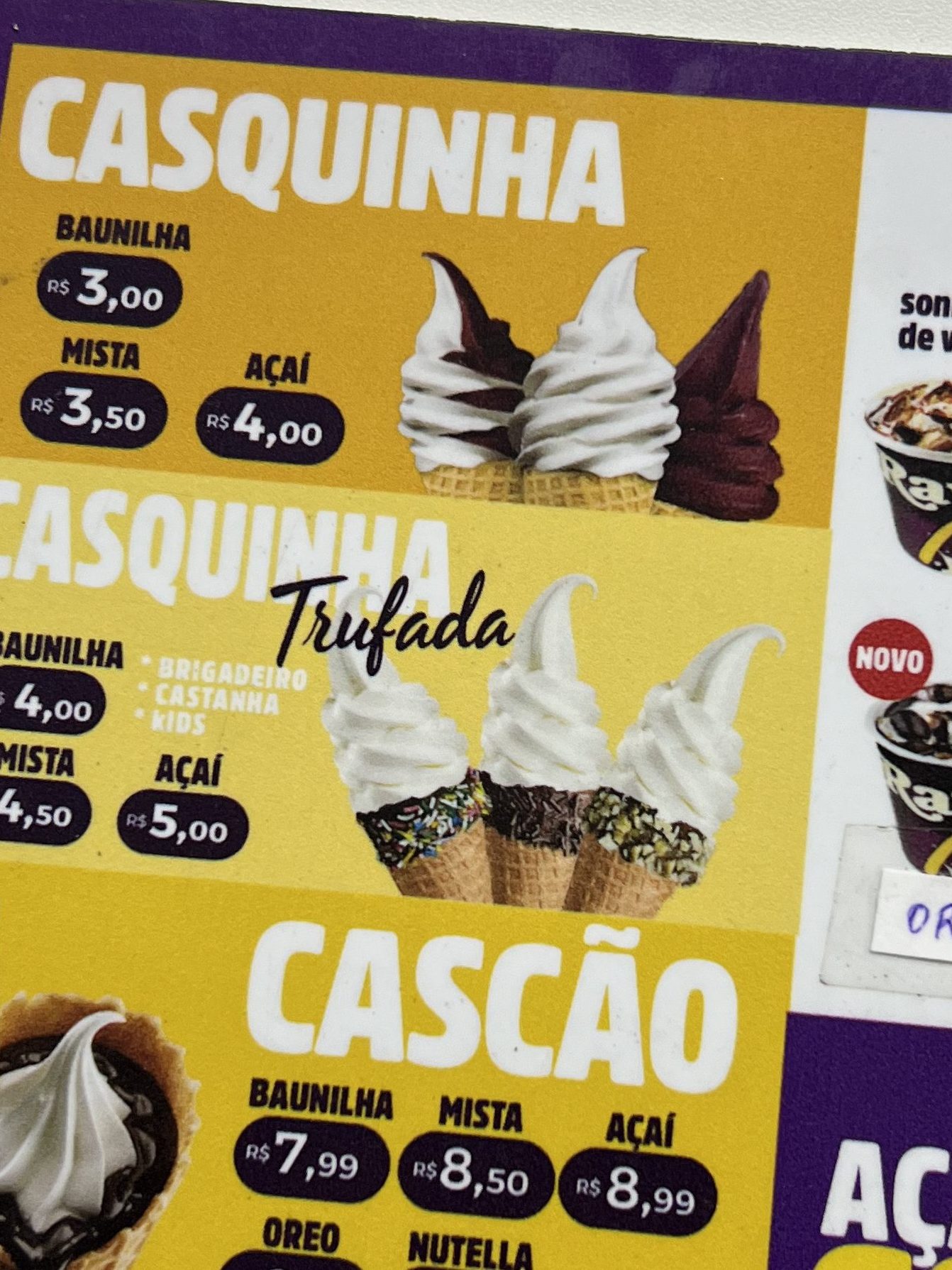 ✔︎ uma casquinha açaï/baunilha = 4R$